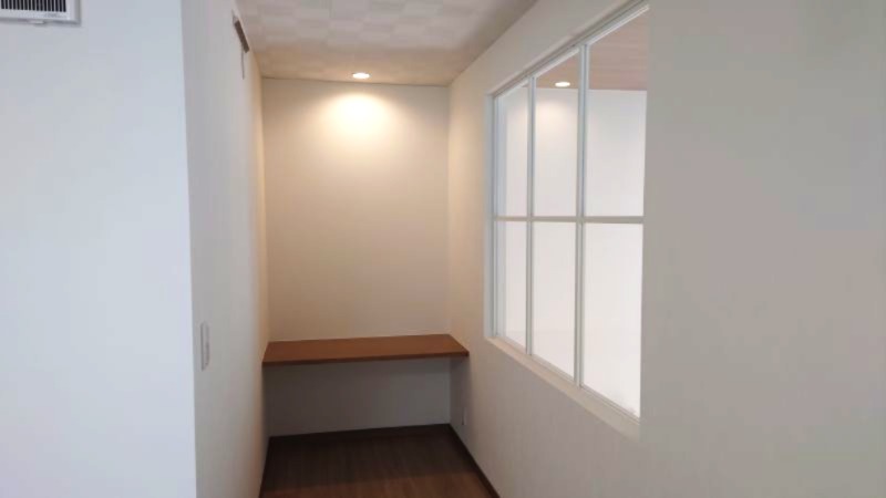LDK内には、格子間仕切りを設置しているのが特徴です。室内の一体感をかもちつつ、視線を適度に遮ることで圧迫感のない仕切りを実現していいます。2階ホールも吹抜けを通して開放感一杯です。