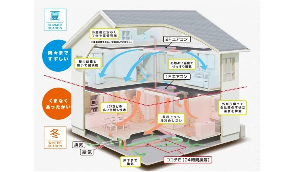 自然な涼やかさで、効率的に家中を24時間室温を調整して安定させます。
